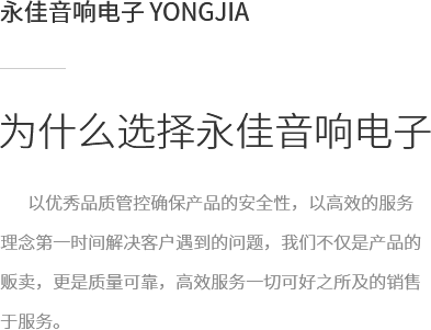 拉薩永佳音響電子有限公司 拉薩永佳音響電子有限公司坐落于美麗富饒的圣城拉薩,公司前身為拉薩昊成音響電子銷售有限公司,注冊資金為300萬元,成立于2010年3月公司地址位于西藏拉薩市貢布塘南側1號薩博廣場4-5、4-8號。拉薩永佳音響電子有限公司主營專業(yè)舞臺音響設備、會議音響系統(tǒng)設備、公共廣播音響系統(tǒng)設備、網絡及監(jiān)控設備、多媒體教學設備、多媒體投影機、幕布、弱電線材、辦公設備、LED液晶顯示屏品種齊全、服務效率、拉薩